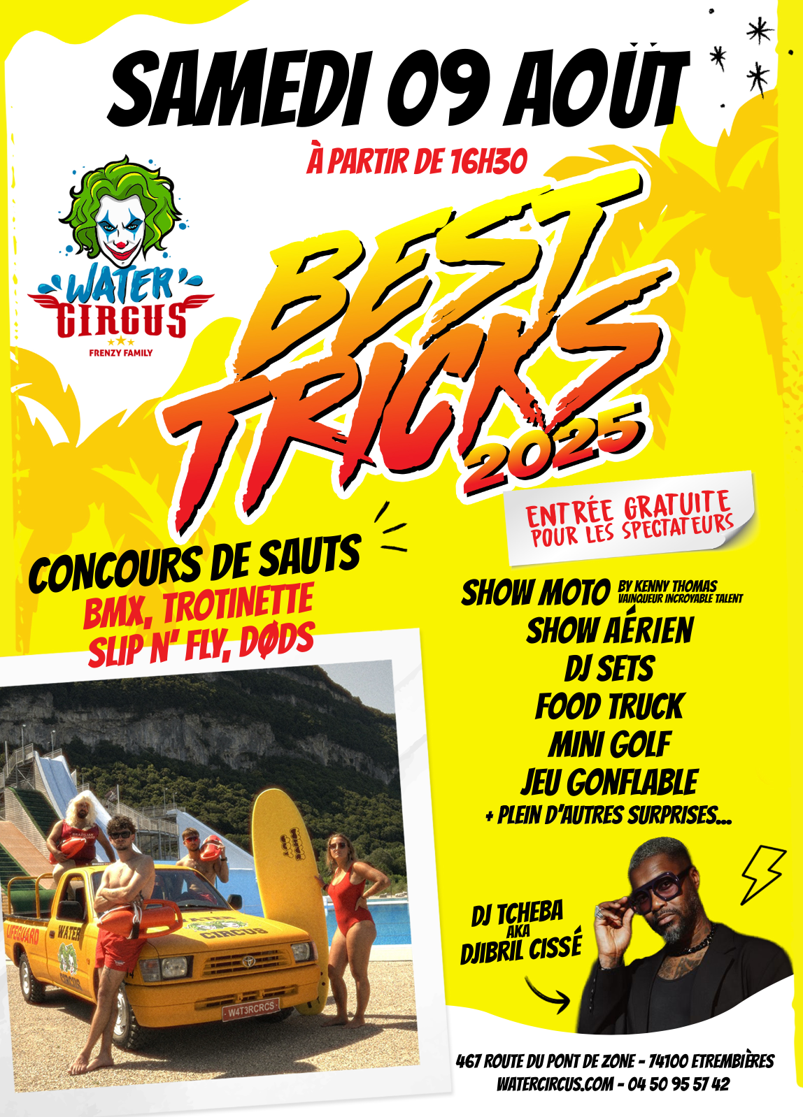 sam09août16h30sam23h59Best TricksConcours de sauts / BMX / Trotinette / Slip n' Fly / Døds